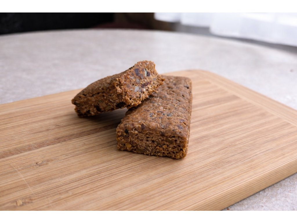 Hrachová vláknina,alfa amylázy,semienka ľanové,slnečnicové,tekvicové, voda,med,rastlinný olej,hrozienka,čokoláda,soľ,cícerova múka, kyselina askorbová,